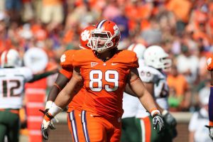 As a defensive stalwart for the Clemson Tigers, Miguel Chavis (#89) tallied numerous highlights on the field. Chavis now is Clemson’s defensive player development coach. Photo courtesy of Clemson Athletics