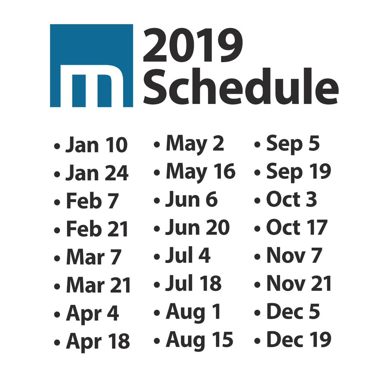 In November, the Messenger announced the official publishing dates for 2019. They are as follows: