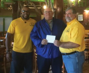 Williams and Perez present a check from BGCO Disaster Relief to Ivan Rosario Torres, pastor of Juan Diaz, Restoration.