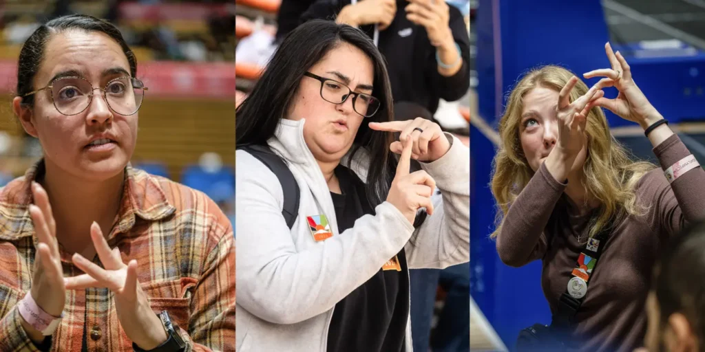This article was originally written by Stella McMillian and published to IMB.org. Above: Suncica, a Deaf volunteer with the IMB, shares the gospel with two North American Deaf in line to see a volleyball match at the 2025 Deaflympics in Tokyo, Japan. IMB Photo