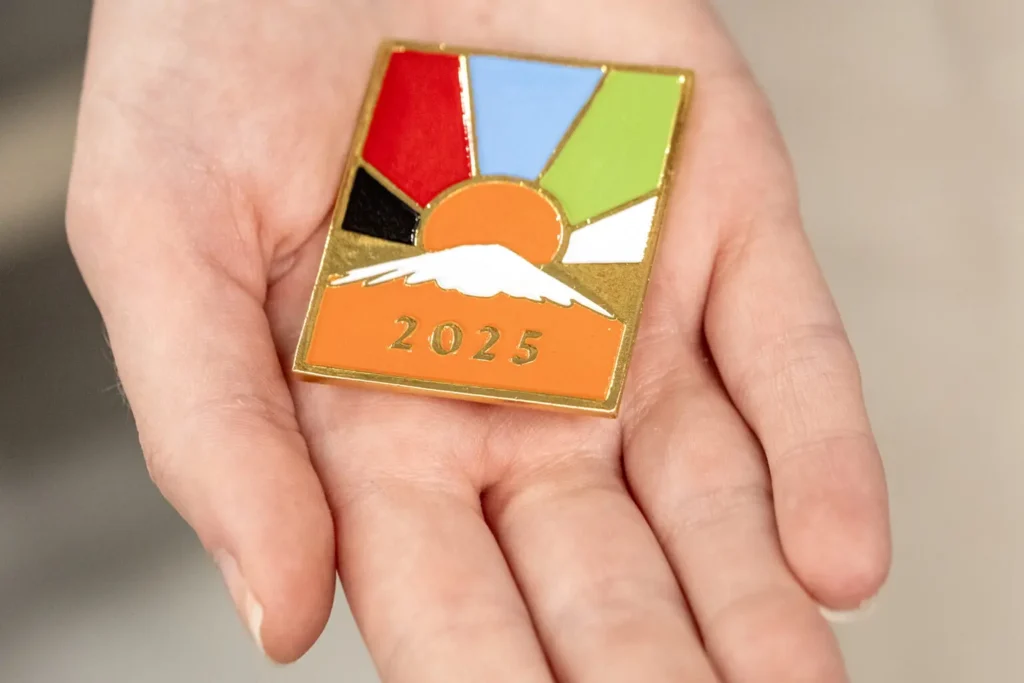IMB worker Kaori James designed a trading pin to give out during Deaflympics outreach. Each color of the pin symbolizes an element of the gospel. Black represents the fall, red represents Jesus, blue represents repentance, green represents sanctification, and white represents the promise of heaven, and gold represents creation and the restoration of all things. IMB Photo
